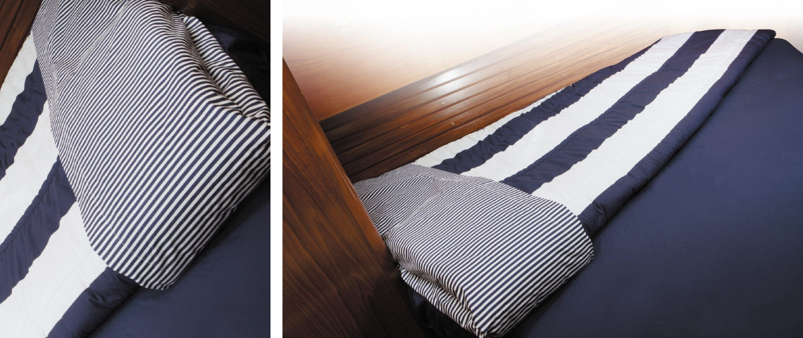 VICTORIA YACHTING sleeping bags are specifically designed for boating. They can be rectangular, triangular or trapeze-shaped. You can transform them into spare duvets thanks to their full opening system. You can also transform them into double size sleeping bags by putting two together.