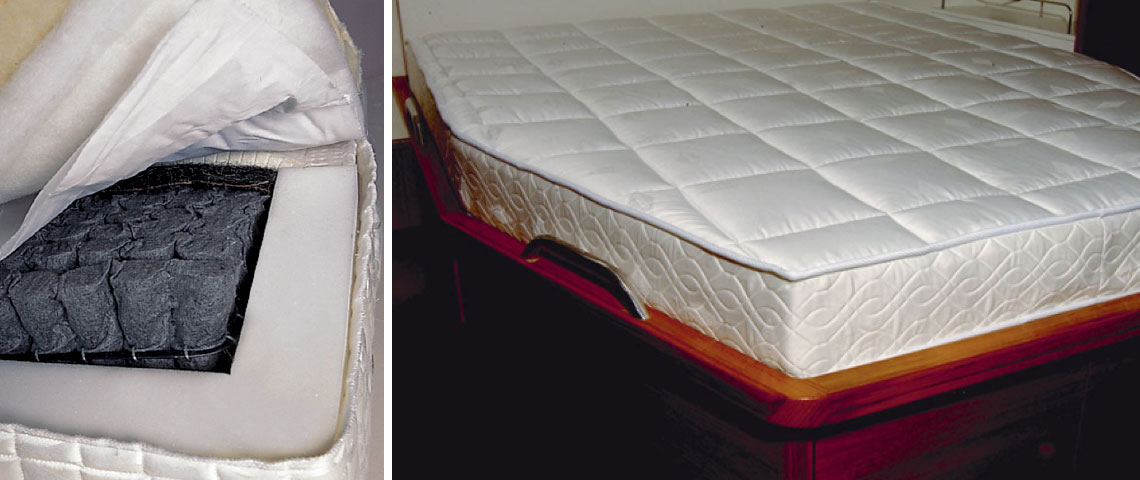 1020 springs (for a 160×200 cm bed), coated with HR 40kg/m3 foam and covered with Victoria Yachting support fabric and Victoria Dry anti-moisture and anti-condensation material.