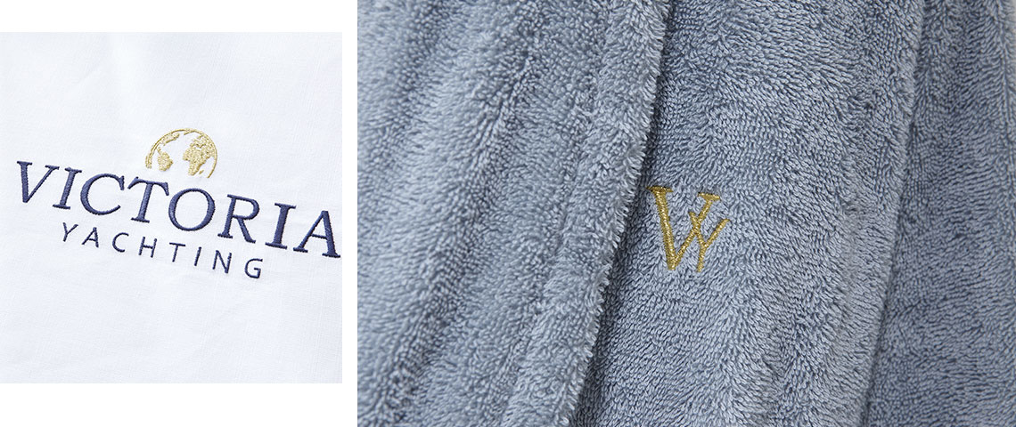 The VICTORIA studio is available for you to design your embroidery. Our in-house embroiders can create the motive of your choice: initials, monogram, logo, name of your boat …