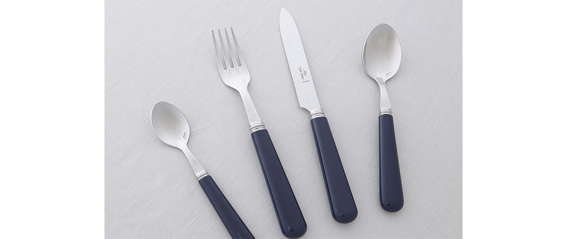 Navy molded polyamide handle with silk finish. 18/10 stainless steel made by one of France’s leading cutlery crafters.