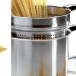 Removable Strate brushed 18/10 stainless steel pasta cooking set.