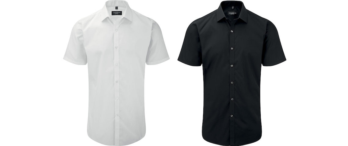 Men’s short-sleeved stretch-fit shirt. Perfect for personalization in embroidery or printing.